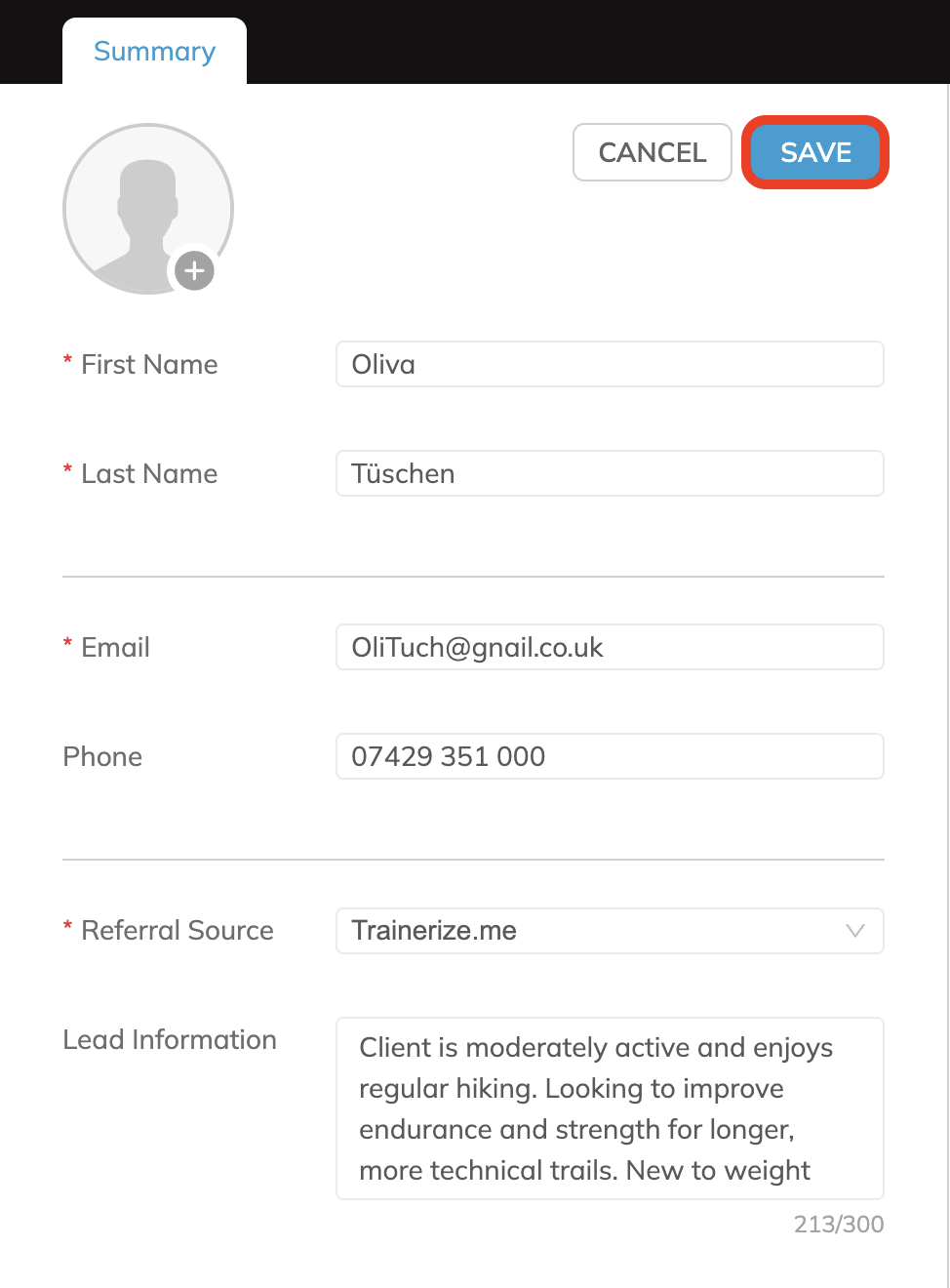In-put in the relevant information about your new prospect >